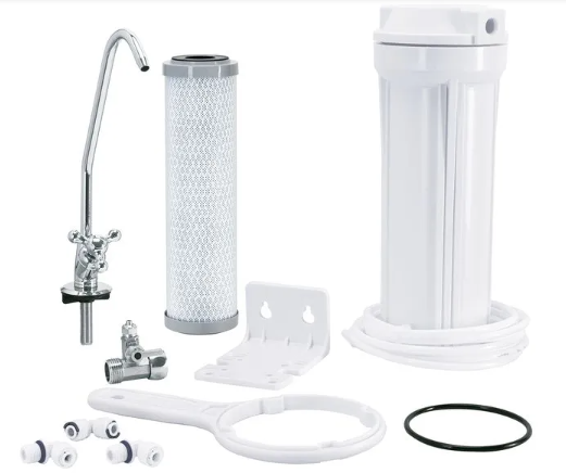 Purificador de agua para colocarse sobre fregadero (instalación directa a red doméstica). CARACTERISTICAS: Vaso y manguera de polipropileno, Conectores de POM y cuello de acero inoxidable, Cartucho de carbón activado, impregnado de plata coloidal que elimina el 99.9% de bacterias, Elimina el sabor a cloro del agua, Retención de sólidos en suspensión. DETALLE: Temperatura de operación: 4 – 38 °C, Flujo de trabajo óptimo: 2.5 L/min, Capacidad de filtro: 150 L/h, Presión de operación: 0.2 a 7 kg/cm², Micras de filtración: 5, Tiempo de vida útil de cartucho: 3 a 6 meses, Alto del purificador: 30 cm. Medidas del producto (Alt+Anch+Prof): x x cm FOSET